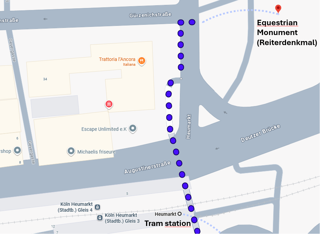 🚋 About 10 minutes with tram line 9 (from Universitätstr. tram station to the next station)